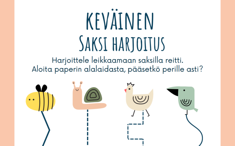 Reittiharjoitus: Leikkaa ja etene maaliin! Tämä tulostettava hauska ja opettavainen tehtävä auttaa lapsia harjoittamaan saksien käyttöä ja kehittämään hienomotorisia taitojaan. Tehtävässä lapsi aloittaa paperin alareunasta ja leikkaa merkittyä reittiä pitkin – pääseekö hän perille asti ilman, että reitti katkeaa? Miksi tämä tehtävä on hyödyllinen? Hienomotoriikan kehitys: Saksien käyttö vahvistaa sormien ja käden koordinaatiota sekä…