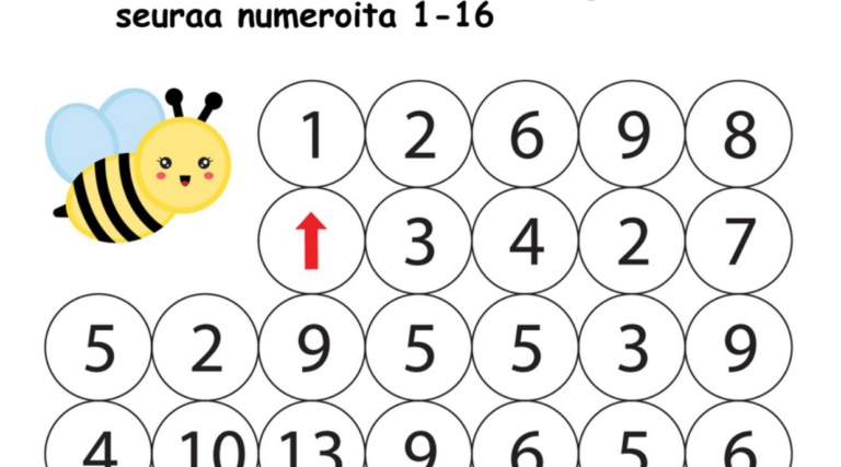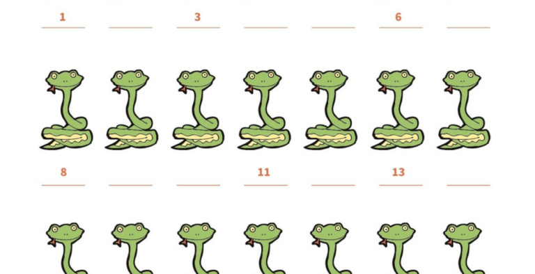 Laske käärmeet ja täydennä numerot! Tässä hauska ja opettavainen tehtävä matematiikasta ja numeroista kiinnostuneille lapsille! Tulosta kuva ja anna lapsen laskea, kuinka monta käärmettä siinä on. Sen jälkeen puuttuvat luvut merkitään paikoilleen. Tehtävä yhdistää matemaattista oppimista ja tarkkaavaisuutta hauskalla tavalla. Tehtävä kehittää: Numerotuntemusta: Laskeminen ja puuttuvien lukujen täyttäminen vahvistavat numeroiden hallintaa. Keskittymiskykyä: Kuvan tarkastelu…