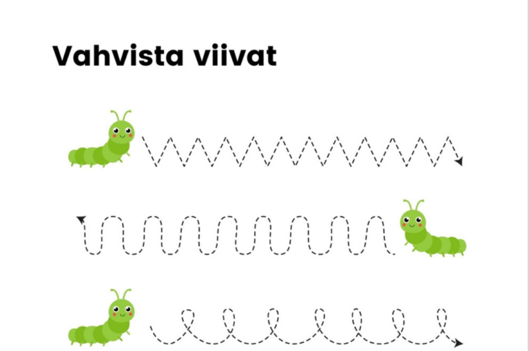 Harjoittele kynänkäyttöä hauskalla tavalla! Kynän hallinnan harjoittelu on tärkeä osa lapsen motoristen taitojen kehitystä. Tämä tehtävä tarjoaa hauskan tavan vahvistaa näitä taitoja! Tulosta kuva ja anna lapsen seurata toukkien mutkittelevia reittejä sekä oppia piirtämään kimalaisen. Tehtävä kehittää: Motorisia taitoja: Viivojen vahvistaminen parantaa tarkkuutta ja kynän hallintaa. Keskittymiskykyä: Reittejä seuraamalla lapsi oppii työskentelemään huolellisesti. Itseluottamusta:…