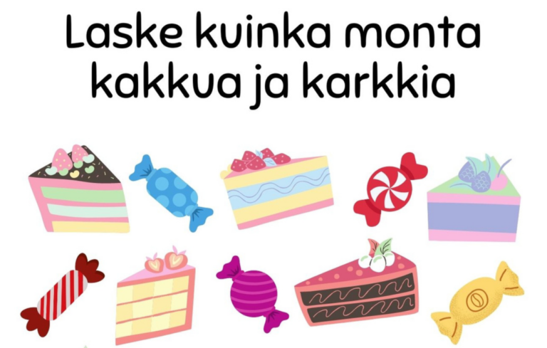Lue lisääTulostettava laskemistehtävä -Laske kuinka monta kakkua ja karkkia?