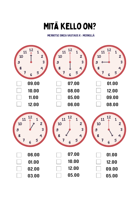- Lapsille, jotka aloittavat kellonajan opettelun